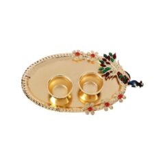 SIGARAM Metal Minakari Peacock Shape Haldi Kumkum Box Haldi Kumkum Holder/Rakhi Platter/Pooja Thali/Welcome Plate - Multicolor