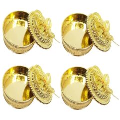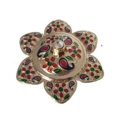 SIGARAM Minakari Flower Shape Haldi Kumkum Box Haldi Kumkum Holder/Rakhi Platter/Pooja Thali/Welcome Plate - Multicolor