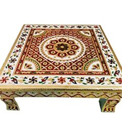 SIGARAM Meenakari Wooden Chowki puja bajot for Home & Office Decor for Pooja - 14x14x5 inch, Gold